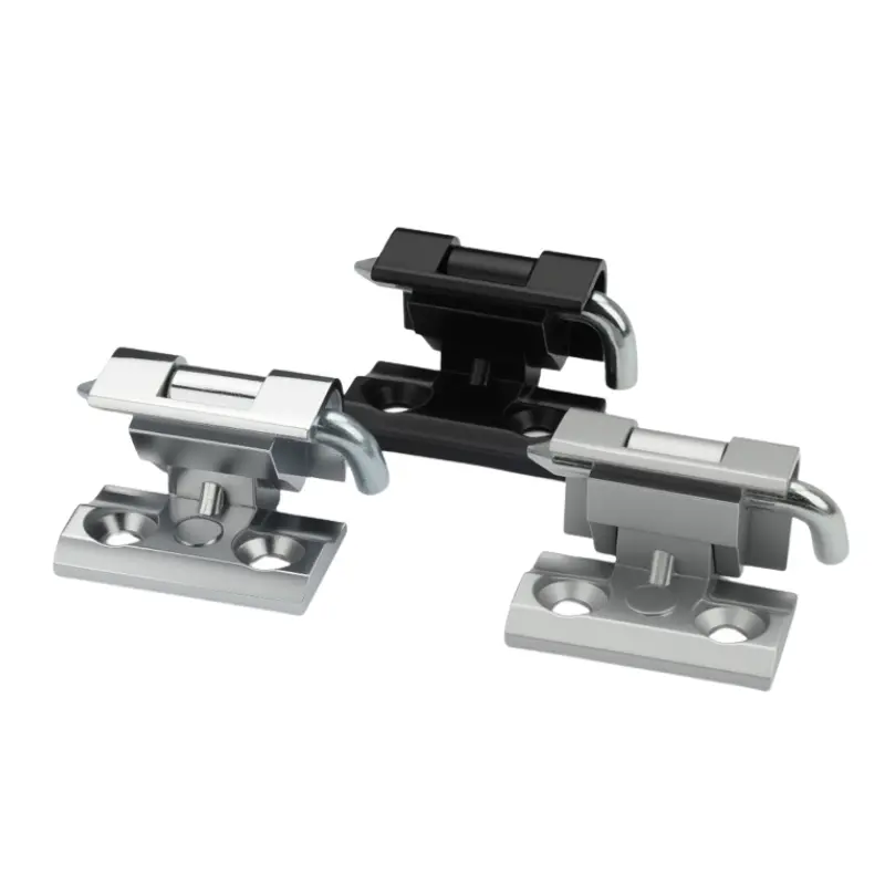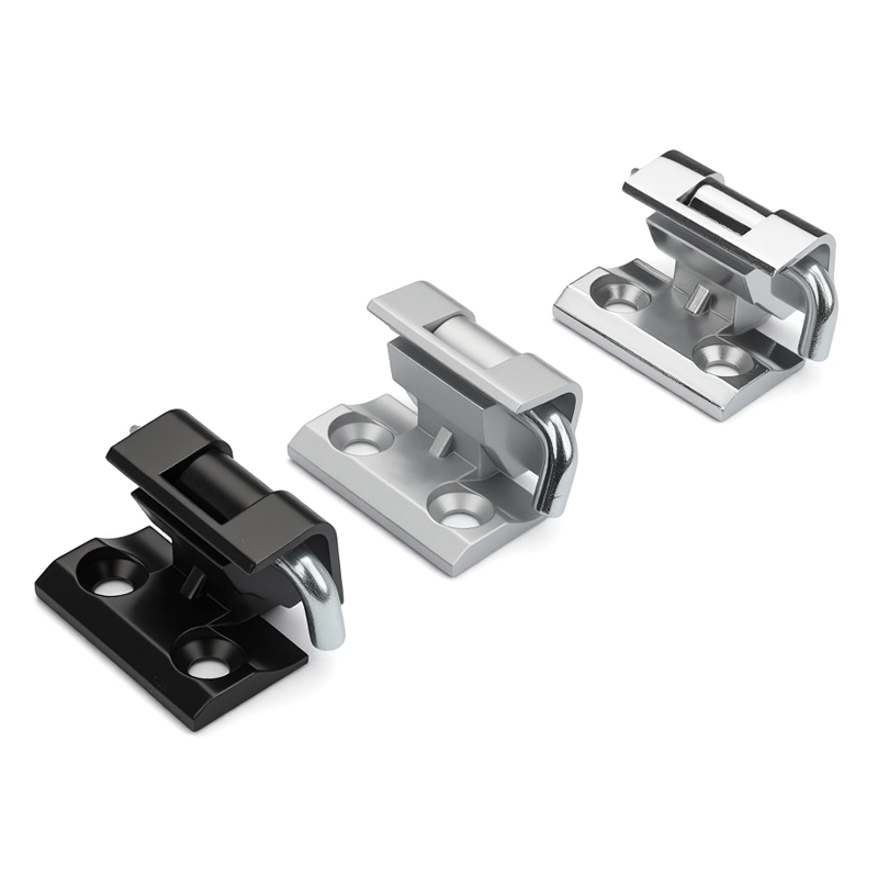 Ang mga bisagra ng card-type plug-in na de-koryenteng gabinete ay gawa sa haluang metal na aluminyo o haluang metal. Ang aluminyo haluang metal ay magagamit sa itim, maliwanag na chrome, at matte na natapos, habang ang zinc alloy ay magagamit sa itim at matte na natapos sa pamamagitan ng isang proseso ng pag -spray, na nag -aalok ng mas mataas na lakas ng mekanikal.