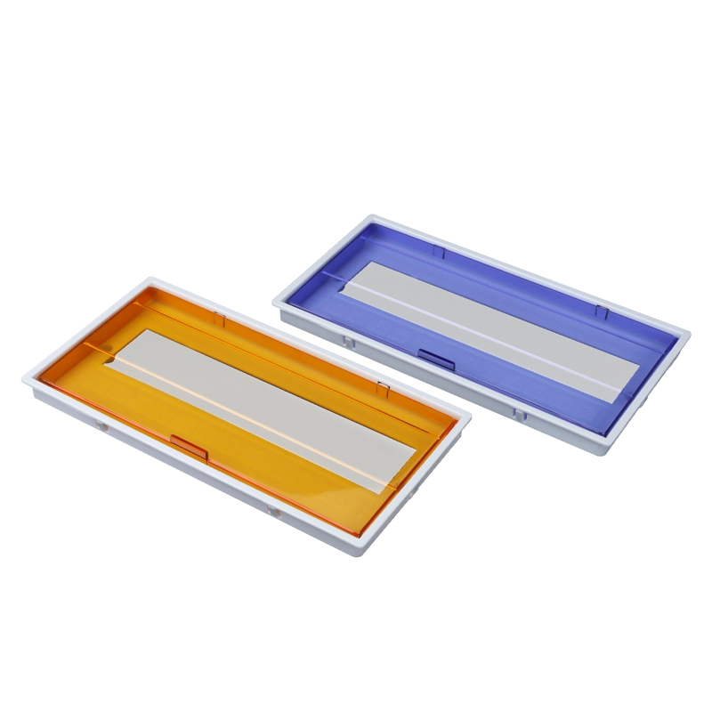 Ang takip ay katugma sa karamihan sa mga karaniwang mga kahon ng elektrikal. Ang produkto ay magagamit sa dalawang mga pagpipilian sa kulay, asul at dilaw, na may asul na bersyon na angkop para sa moderno, minimalist na palamuti at ang dilaw na bersyon na mas nakakaakit ng mata para sa mabilis na pagkakakilanlan ng lokasyon ng kahon ng elektrikal.