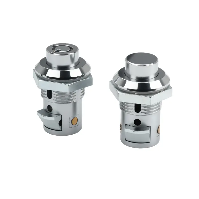 Ang modelo ng push-button ay awtomatikong nag-unlock kapag ang pindutan ay pinindot at naka-lock kapag ang pintuan ay sarado, na nagbibigay ng pangunahing proteksyon sa seguridad.Ang pin na tumbler lock model ay gumagamit ng isang mekanismo ng PIN na nagbibigay-daan lamang sa pag-ikot na may isang pagtutugma ng key, na nagbibigay ng pag-andar ng anti-theft.Both na gumagamit ng isang zinc alloy na konstruksyon upang mag-alok ng isang tiyak na antas ng lakas, at tampok na idinagdag na hindi tinatagusan ng tubig na gasket para sa dagdag na praktikal. Ang Vending Machines Zinc Alloy Cylinder Lock ay may maliwanag na pagtatapos ng Chrome para sa paglaban sa kaagnasan.Ang maximum na kapal ng mga naka -install na mga panel ng pinto ay 10 mm. (Para sa hindi kinakalawang na mga materyales na bakal, mangyaring makipag -ugnay sa amin. Kasalukuyan kaming gumagawa ng mga hulma.)